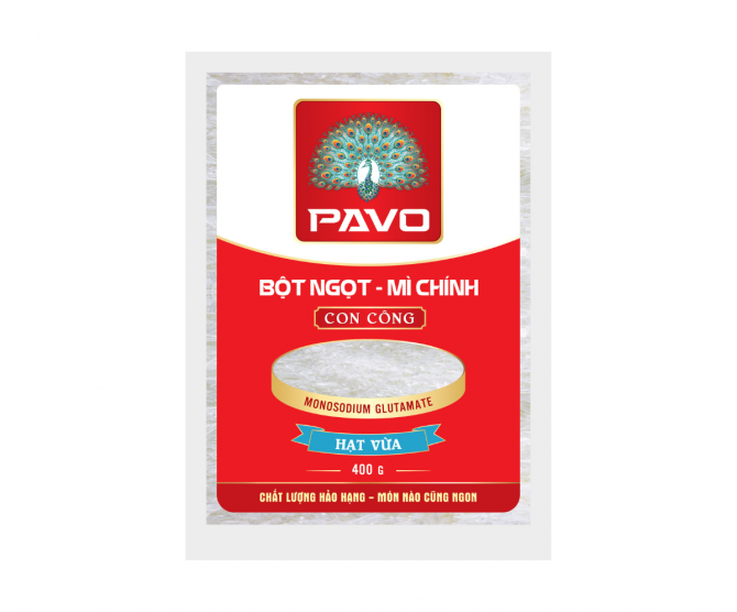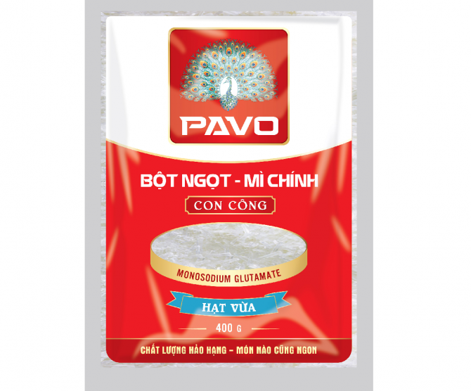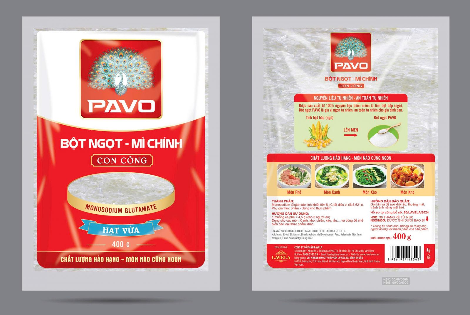 LAVELA hân hạnh ra mắt dòng sản phẩm Bột Ngọt (Mì chính) CON CÔNG thuộc thương hiệu PAVO - bí quyết cho bữa ăn thêm đậm đà, tròn vị và đầy yêu thương. Được sản xuất từ 100% nguyên liệu thiên nhiên là tinh bột bắp (ngô), bột ngọt Pavo là gia vị ngon tự nhiên, an toàn tự nhiên cho gia đình bạn.