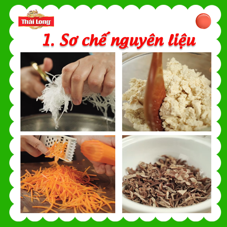 Bạn cho bún tàu ra chén, đổ một lượng nước ấm ngập bún tàu và ngâm khoảng 10 - 15 phút cho bún mềm ra. Sau đó, dùng kéo cắt bún thành các khúc vừa ăn khoảng 1 ngón tay ra rây lọc cho ráo nước.Bạn ngâm với nước sôi khoảng 5 phút. Tiếp đến múc đậu hũ vào một túi vải, dùng muỗng dằm nhuyễn ra, rồi vắt đậu hũ cho ráo nước, để ra tô đựng.