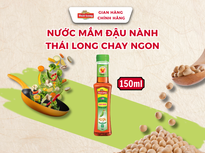 Nước mắm Đậu Nành Thái Long Chay Ngon 150ml Nước Mắm Đậu Nành Thái Long là một gia vị không thể thiếu trong các bữa ăn của người có sở thích ăn chay thanh đạm. Sản phẩm được sản xuất trên dây chuyền công nghệ hiện đại và khép kín tại Việt Nam.